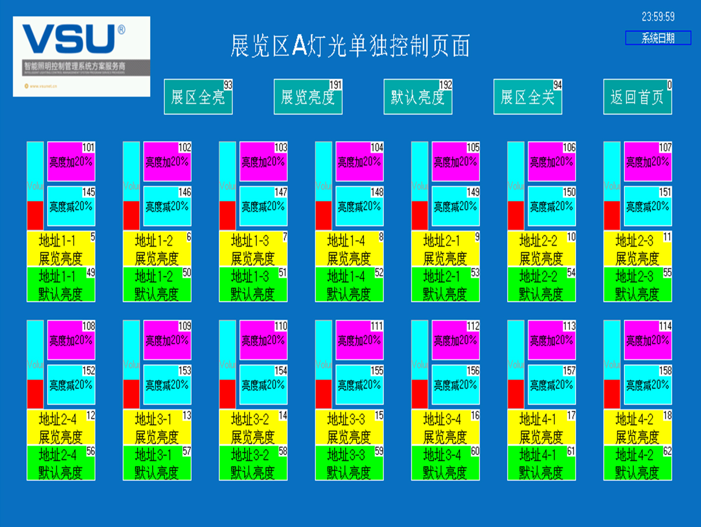 該項目采用的VSU照明設備有:4路16A智能照明模塊、人體感應器、6路IO模塊、智能6鍵面板、網關主機、電源模塊、7寸安卓觸摸屏。自動感應人流,調節(jié)燈光亮度,在不減少旅客游覽體驗的情況下節(jié)省電能消耗。