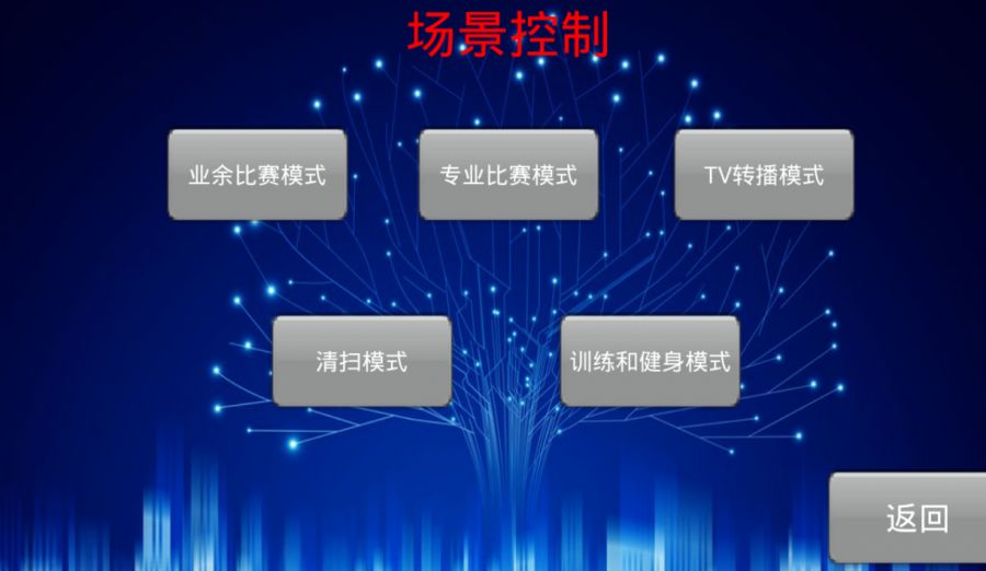 另外還可以直接通過(guò)面板切換專(zhuān)業(yè)比賽模式、業(yè)余比賽模式、TV轉(zhuǎn)播模式、清掃模式、訓(xùn)練和健身模式、全開(kāi)和全關(guān)模式等不同的燈光場(chǎng)景。(效果如下圖)