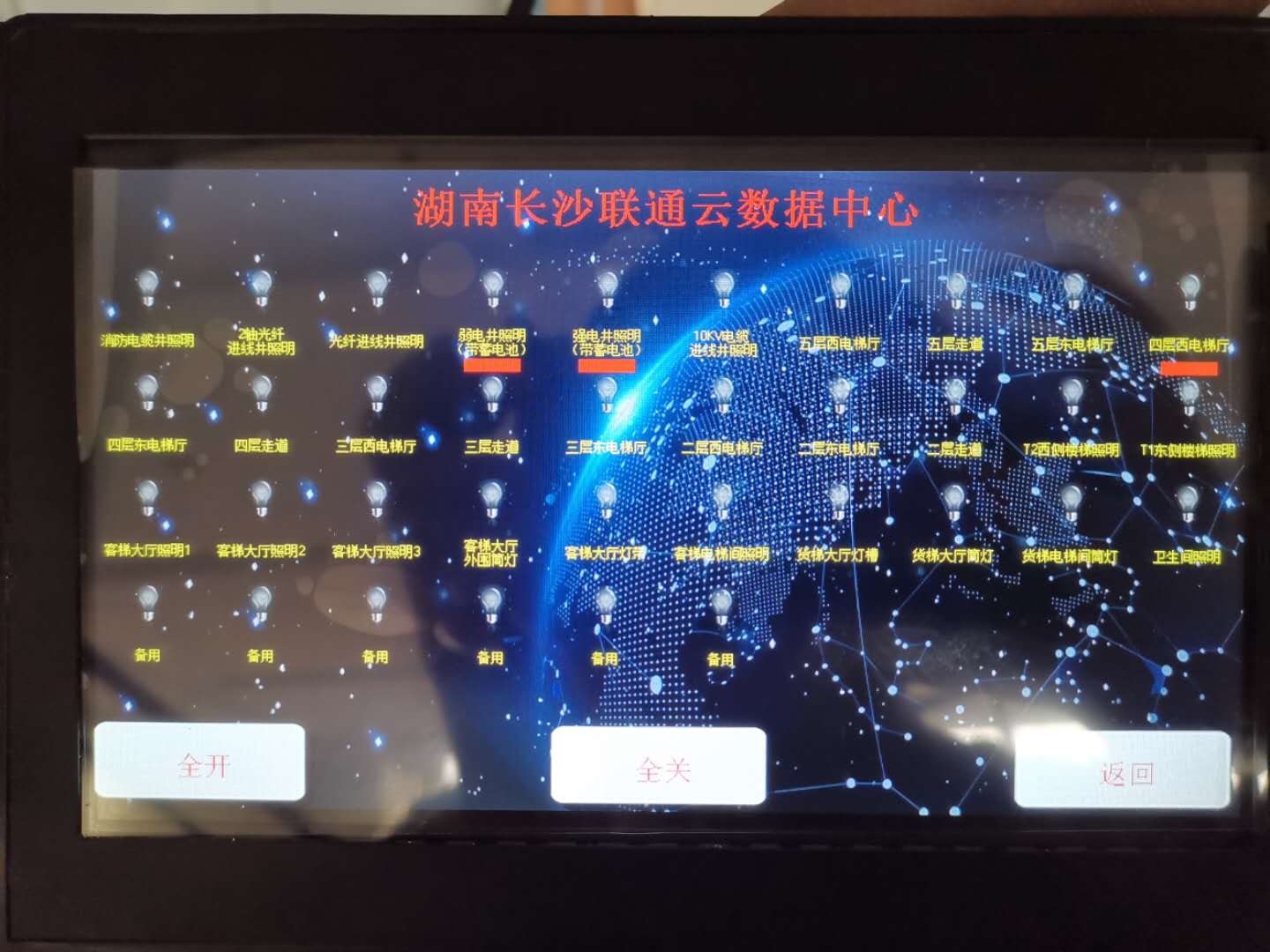 VSU為長(zhǎng)沙聯(lián)通云數(shù)據(jù)中心打造高效智能照明控制系統(tǒng),真正實(shí)現(xiàn)大幅度降低能耗,該項(xiàng)目于今年九月完成智能照明調(diào)試工作,通過觸摸屏集控?zé)艄饣芈?。走廊,電梯廳等公共區(qū)域安裝了人體感應(yīng)器,實(shí)現(xiàn)人來燈亮,人走燈滅。