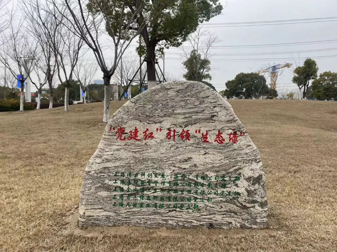 一塊鐫刻著“黨建紅引領(lǐng)生態(tài)綠”以及五個黨支部名字石碑矗立在新栽苗木旁邊,這塊石碑不僅是對我們植樹活動的見證,更是對黨建引領(lǐng)綠色發(fā)展理念的傳承與弘揚。它象征著五個黨支部在黨建紅的引領(lǐng)下,攜手并進(jìn),共同書寫綠色發(fā)展的新篇章。