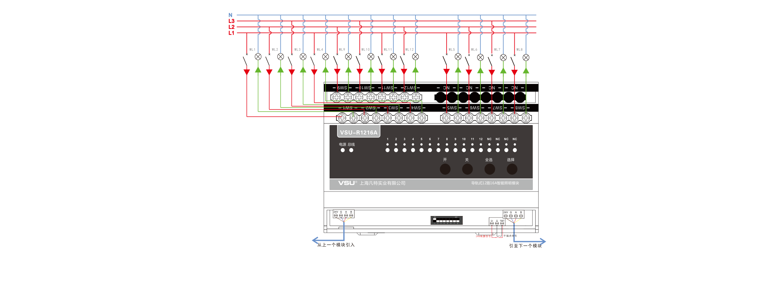 | 本產(chǎn)品為導(dǎo)軌式安裝,含12路智能繼電器,每回路可獨(dú)立控制3520W燈具的開(kāi)關(guān),帶應(yīng)急按鍵,LED燈實(shí)時(shí)指示各個(gè)回路開(kāi)關(guān)狀態(tài),可設(shè)置為互鎖控制6組窗簾開(kāi)合; |