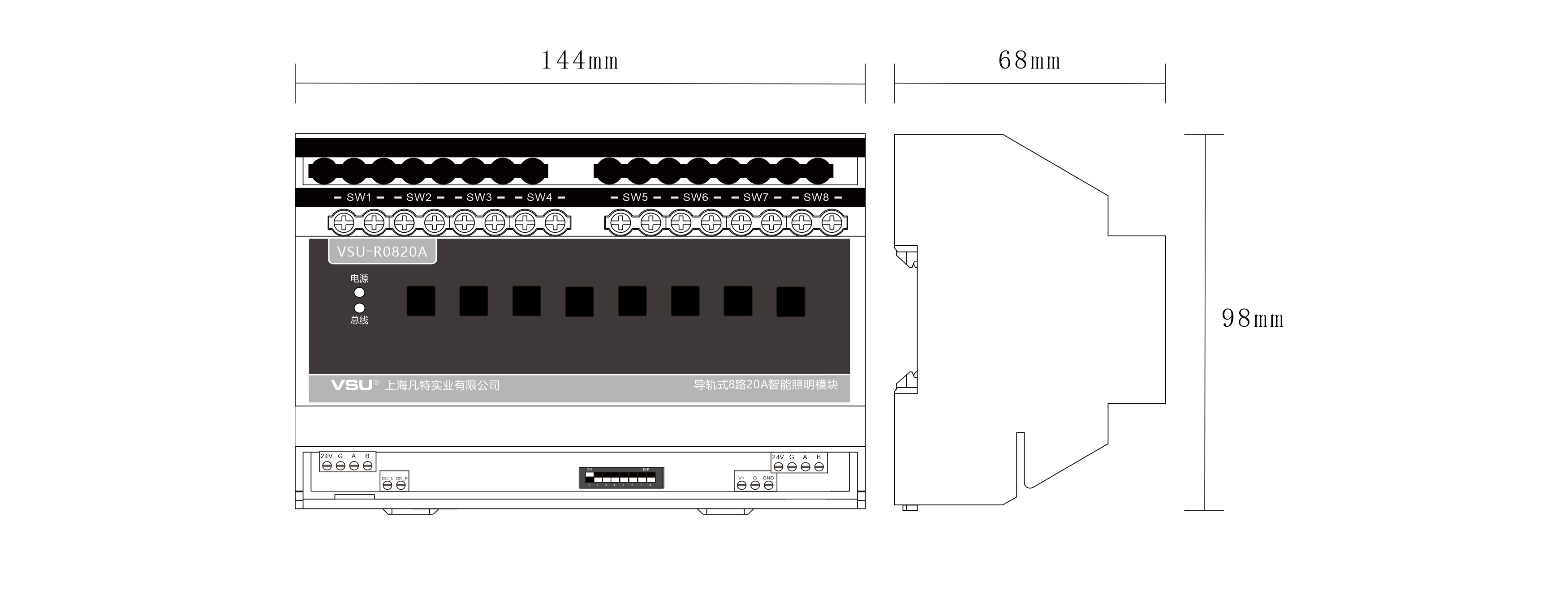 本產(chǎn)品為導軌式安裝,含8路智能繼電器,每回路可獨立控制4400W燈具的開關(guān),帶應急按鍵,LED燈時時指示各個回路開關(guān)狀態(tài),可設(shè)置為互鎖控制4組窗簾開合;