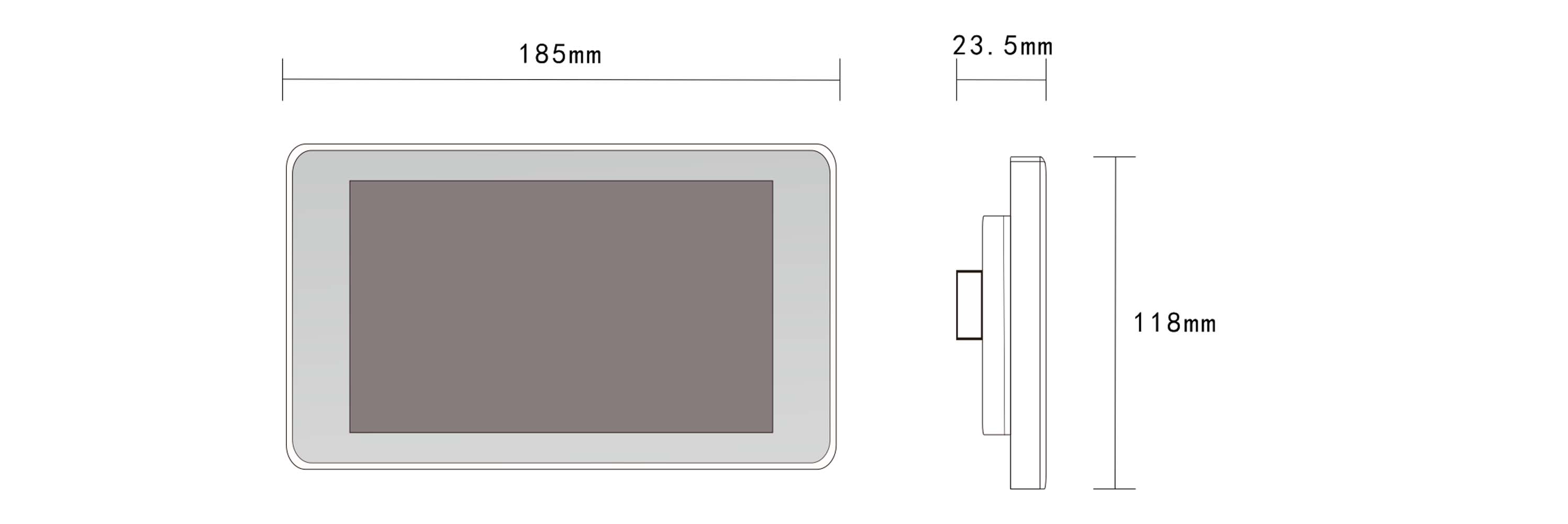 | 1,工作電壓:DC 24V;               2,工作電流:<250mA; 3,工作功耗:3.12W; 4,屏幕尺寸:7英寸; 5,分 辨 率 :1024x600; 6,外框顏色:黑色; 7,觸屏方式:電容式; 8,通信接口:1×VSU-Net總線接口; 9,工程下載:TF卡下載; 10,運(yùn)行溫度:-20℃~70℃; 11,儲(chǔ)存溫度:-30℃~80℃; 12,外觀尺寸:185mm×118mm×23.5mm; 13,重量:379g/pcs; | 1,86底盒安裝,通用性強(qiáng); 2,安裝尺寸185*118*23.5;開口尺寸86*86*52; 3,支持0、90、180、270度旋轉(zhuǎn)安裝顯示; 4,嵌入式操作系統(tǒng),上電4秒后運(yùn)行; 5,控制設(shè)備狀態(tài),反饋實(shí)時(shí)數(shù)據(jù); 6,單個(gè)操作可觸發(fā)多條指令; 7,操作界面可編輯,圖形界面支持圖片、圖形、文字、3D按鍵; 8,65K色階,16位RGB; 9,支持TF卡下載工程; 10,提供開放式界面編輯平臺(tái)。 | 7寸智能觸摸屏,單控開關(guān)、窗簾和場(chǎng)景總線控制,可自定義界面支持3D文字、3D圖片,個(gè)性化界面;用于集中控制,支持雙向通信,安裝方便,適用于各種多媒體中央控制系統(tǒng);