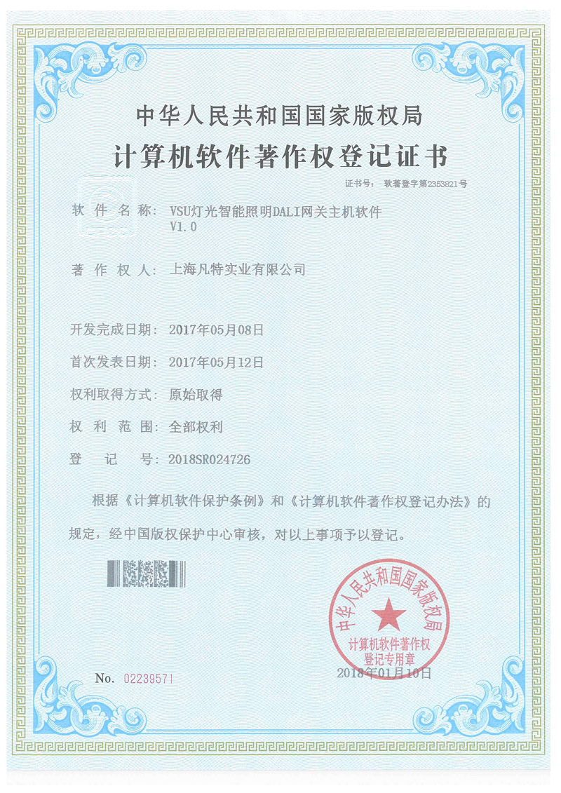 VSU智能照明有多項自主知識產(chǎn)品證書,所有產(chǎn)品都經(jīng)過國際CE認證,符合國際電工標準。
