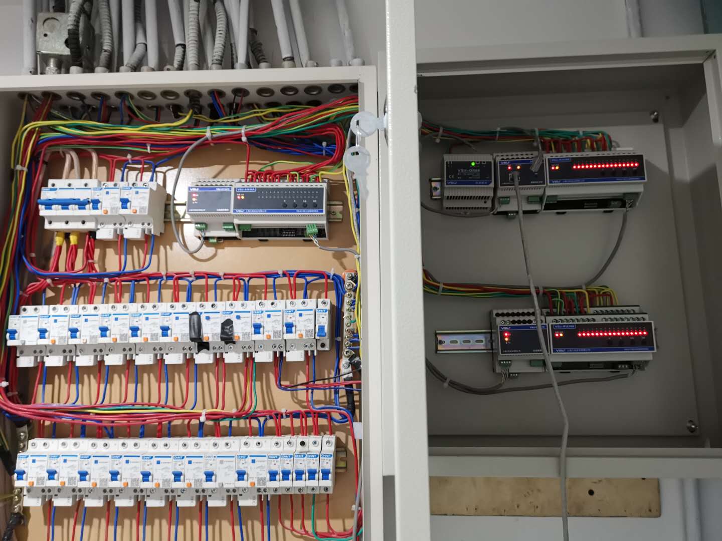 采用VSU總線型成套產(chǎn)品:智能網(wǎng)關(guān)主機(jī)控制整體,接受到手機(jī)或面板的指令輸送到開關(guān)執(zhí)行模塊進(jìn)行遠(yuǎn)程開關(guān)燈操作,采用的照明模塊是16路16A的,搭配DR60電源模塊、級聯(lián)模塊確保供電充沛。總線的特點(diǎn)是連產(chǎn)品的調(diào)試檢測都不需要到現(xiàn)場,遠(yuǎn)程即可將其調(diào)試就位。這個(gè)項(xiàng)目甚至連我司技術(shù)人員遠(yuǎn)程協(xié)助都不需要自己就安裝完成,可見其有多便于安裝,加上連接片用于串聯(lián)模塊,不是專業(yè)人員也可自主安裝使用。