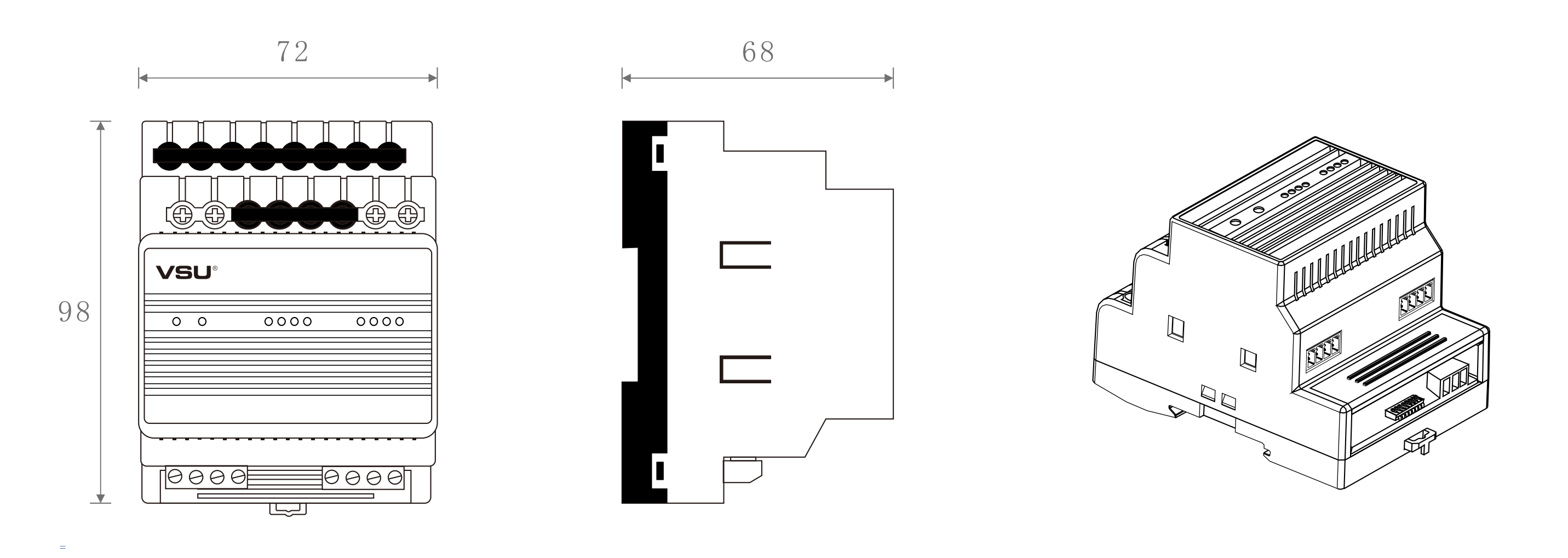 1,標(biāo)準(zhǔn)導(dǎo)軌式安裝占4個模數(shù)位;